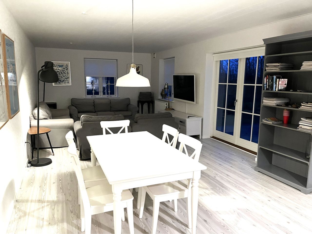 Hyggelig tv-stue med glasdørparti