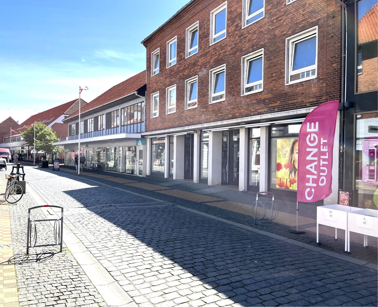 Forretningen ligger i byens mest besøgte gade, som genbo til Rønne Apotek.