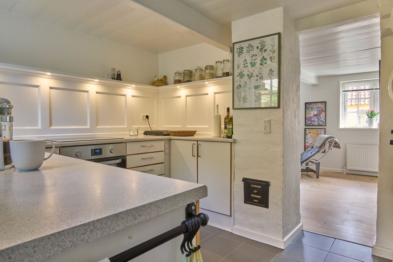 Et godt indflytningsklart byhus renoveret med respekt for huset oprindelige stil.
