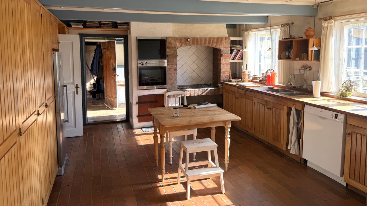 Charmerende 4-længet bindingsværksejendom med stråtækte udlænger og sommeranneks i "Gårdkone"